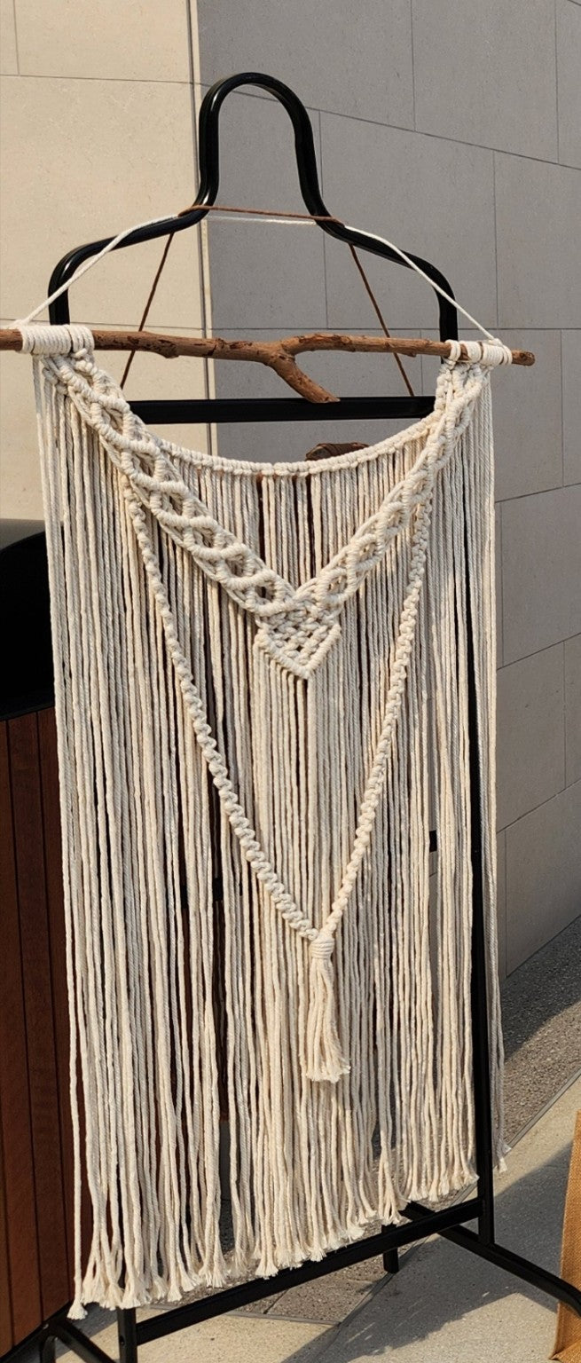 حوّلي أي مساحة في منزلك إلى ركن دافئ ومليء بالطاقة الهادئة مع هذه المكرمية الجدارية اليدوية المصنوعة من خيط قطني ناعم وعُقد متداخلة تعطي شكلًا هندسيًا أنيقًا يأسر العين من اللحظة الأولى.