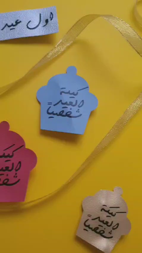 ✨ Designed with festive Arabic and English phrases like "هلال العيد", "كشخة العيد", "كيكة العيد شخصياً", "حلاوة العيد", "First Eid", and "أول عيد", they come in adorable shapes like cupcakes, candy, and crescents.